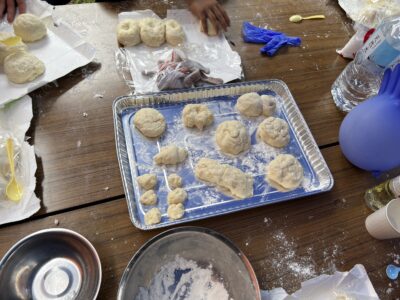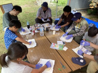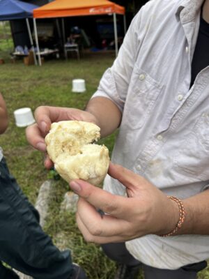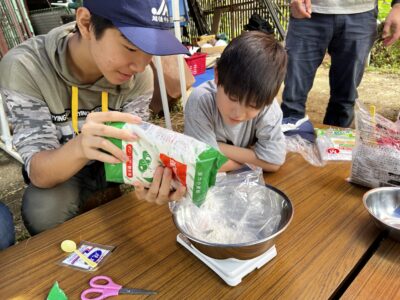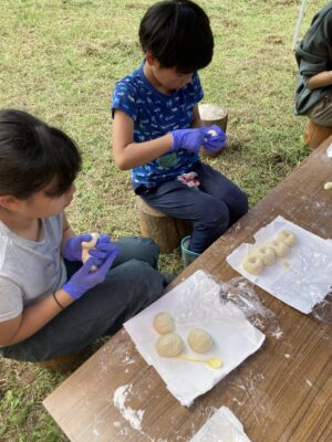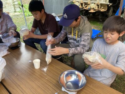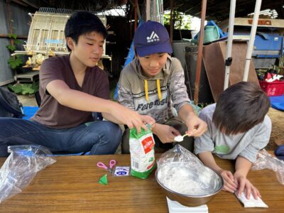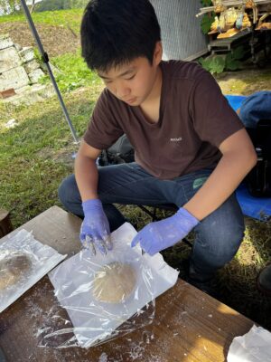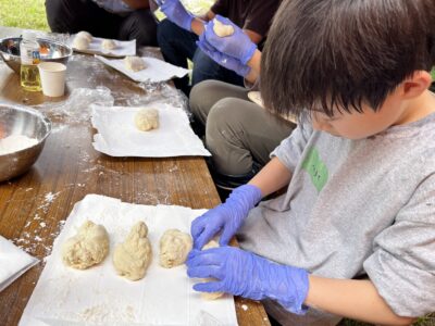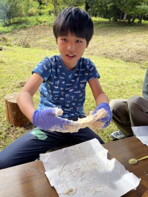 木こりクラブで初の試みで、イースト菌を混ぜて生地を発酵させる本格的なパンづくりです!