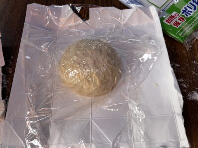 丸く整ったら、ラップをかけて1次発酵します。30~40分ほど。