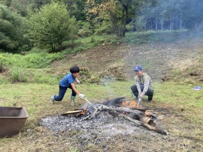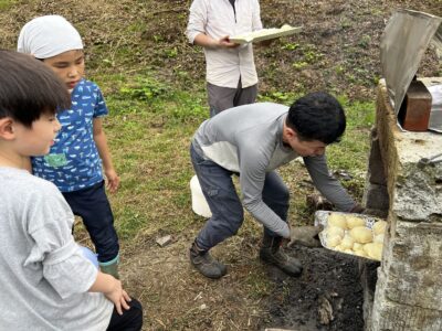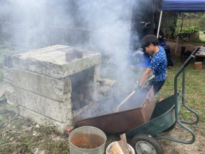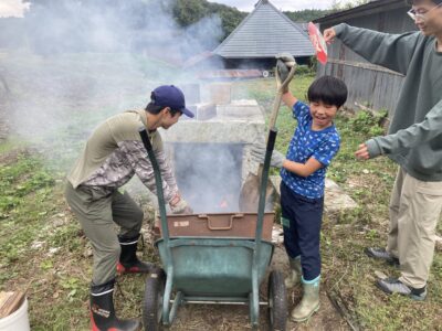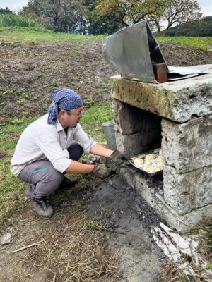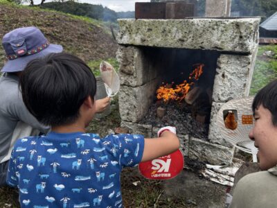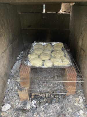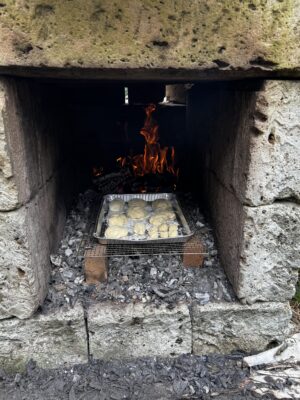 ピザ窯(年1ぐらいしか使わない笑)を使い、パンを焼きます。