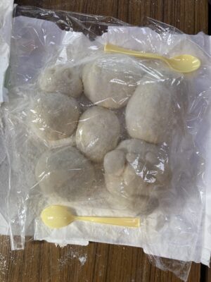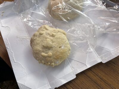 前日の雨の影響で湿度が多いからか、分量通りにやってもべちょべちょになってしまいました。