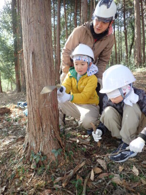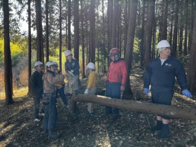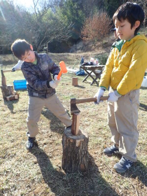 残った木や森を強くするためにも間伐(間引き)が必要です。その際に伐採された木を間伐材と言います。間伐材は木材製品として使うにはまだ小さく、使い道がないため、森に放置されがちです。今回はそんな間伐材を薪として利用できたこと、間伐を通じて子どもたちが薪作りの体験もできたこと、森にとっても木こりクラブも意味のあることだったと思います。このような活動は今後も続けていきたいですね。