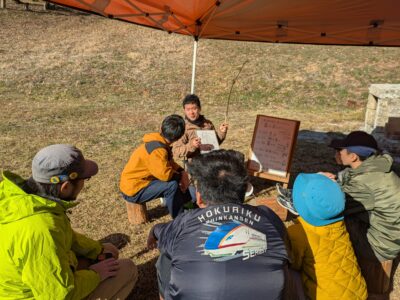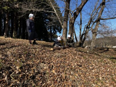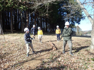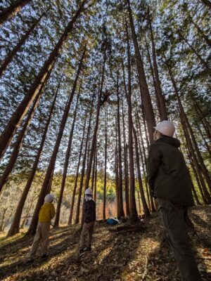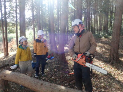 1日の流れや、森の間伐、木の伐り方についての話を聞きます。