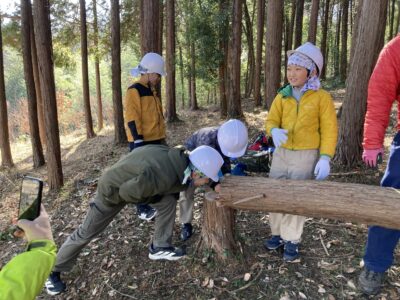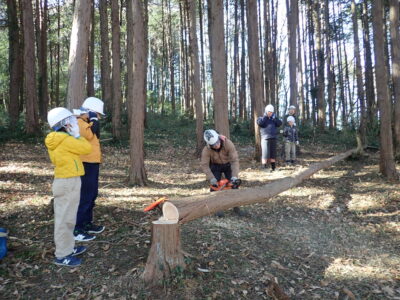 6年生たちは圧巻のノコギリさばき。低学年の子たちからも尊敬の眼差しが・・・!