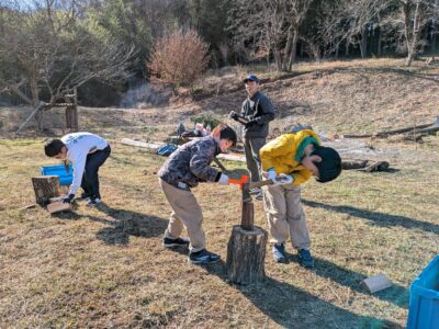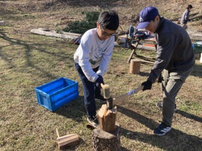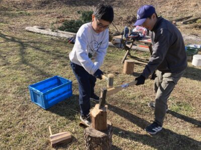 焚き火・野外炊事・キャンプファイヤーで多用する薪。過去に仕込んだ薪が減ってきたので、今回は子どもたちと一緒に仕込みます!冬は木が水を吸い上げていない時期で「切り旬」と言われています。薪作りは冬の仕事なのです。この季節仕事を楽しみましょう!